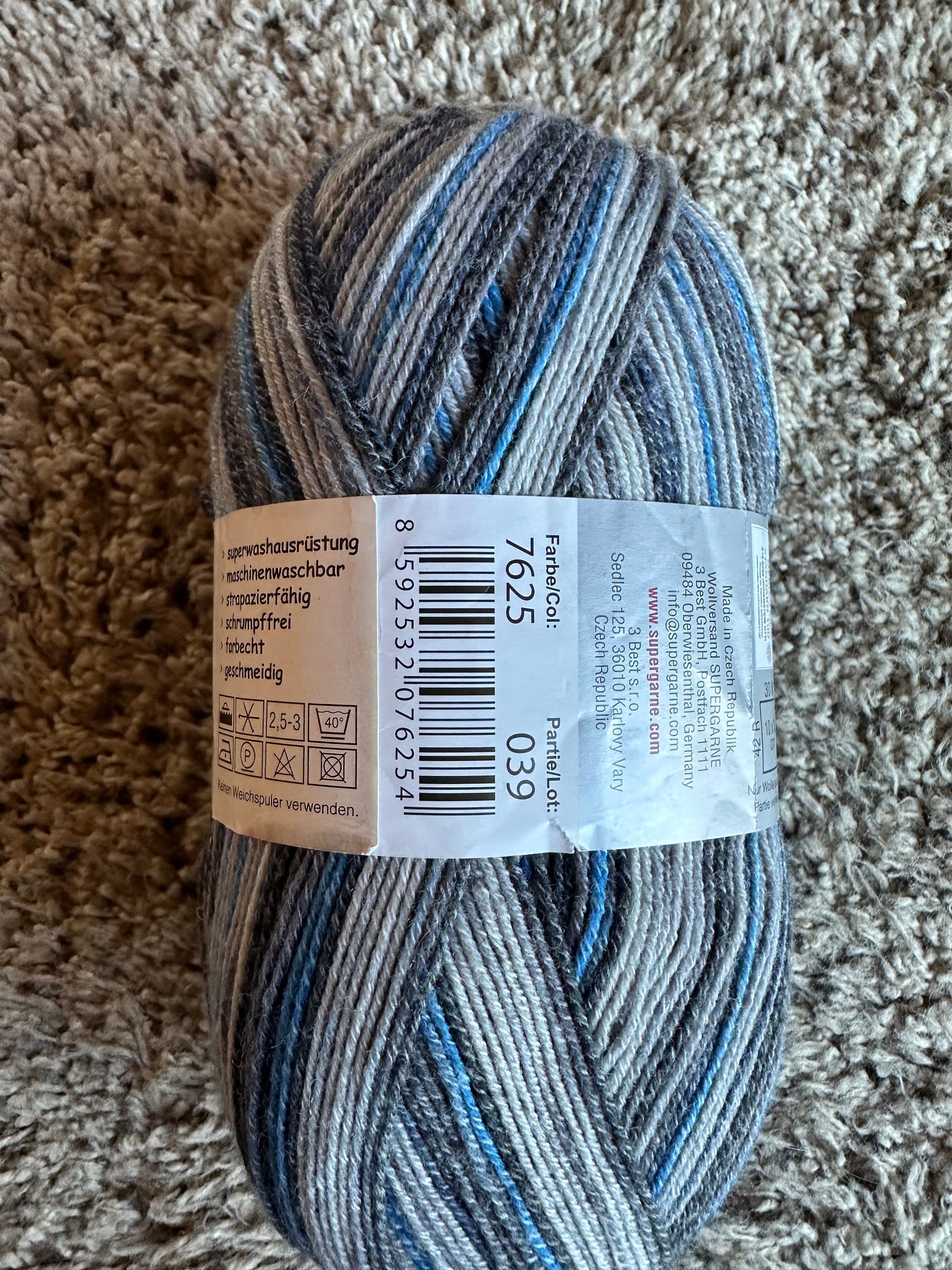 Great price on overstocked yarn, 50% superwash Wool, 25% Cotton and 25% Polyamide. Only 1 skein available. 100 gm/416 m per skein.